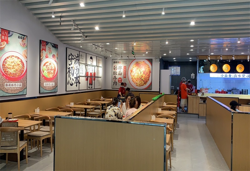 重庆小面店要合理运转,对面积是有一定要求的,要求我们除去厨房面积、收银等面积后,还能余留足够的空间摆放足量的桌椅,以供多消费者同时进餐。因此我们选择店铺时就一定要注意了,所选的门店面积千万不能过小,以免影响收益。